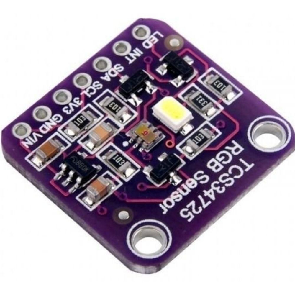 Sensor de cor RGB de alta precisão baseado no TCS34725, capaz de identificar e diferenciar cores com estabilidade superior. Possui filtro infravermelho (IR) e LED integrado para melhor iluminação do alvo, garantindo leituras mais confiáveis.